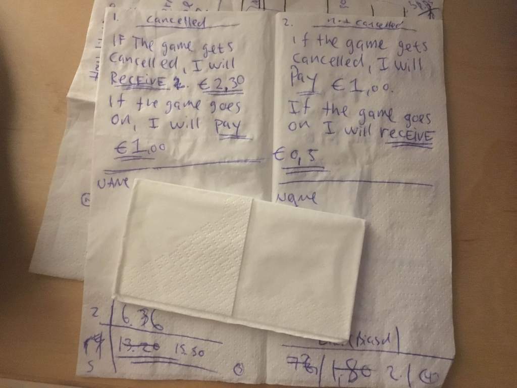 - if you think the game will not get cancelled and the game goes on you receive €1.40.*
