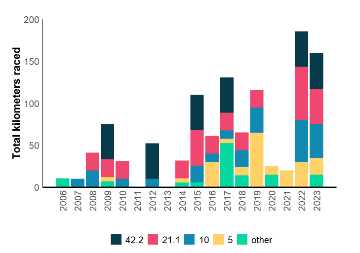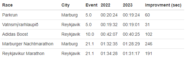 Compared to last year, I improved significantly on all distances, except the marathon.